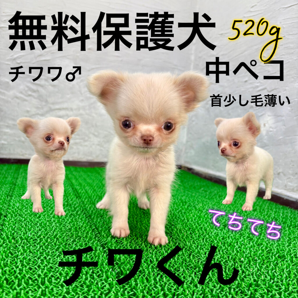 チワ君(チワワ・男の子/生後2ヶ月)体が小さめで、とても可愛らしいチワワの男の子です。まだ生後2ヶ月ですが、毎日元気いっぱいに過ごしています。人懐っこくて甘えん坊な性格で、撫でてあげると嬉しそうに尻尾を振って寄ってきます。 ごはんもしっかり...